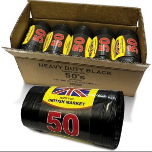 Heavy duty black bags 50s (10 Rolls)