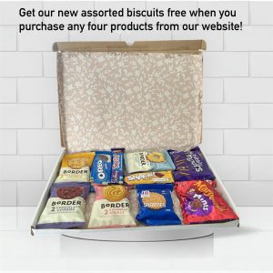 Free individually wrapped assorted biscuits & Chocolates (V)